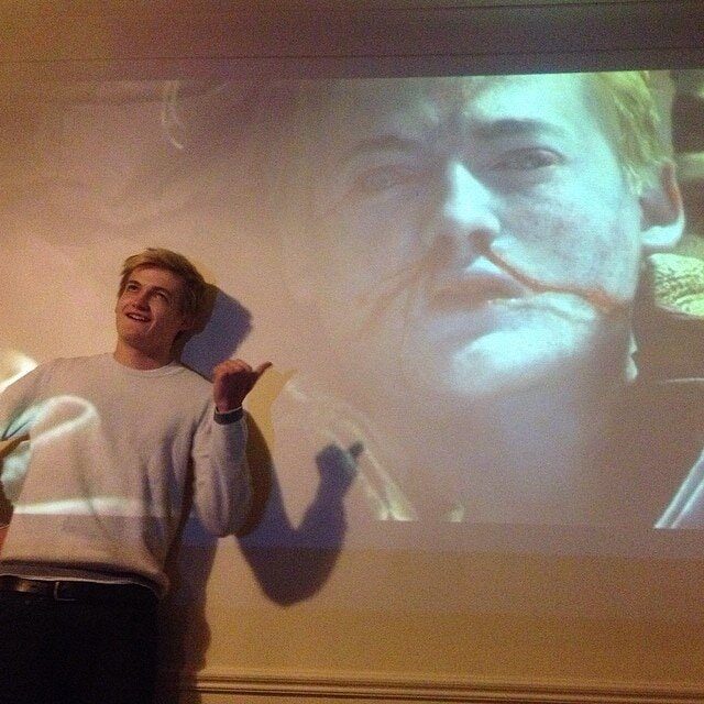 Джек Глисон смотрит вместе с друзьями эпизод «Игры престолов», где его персонаж умирает