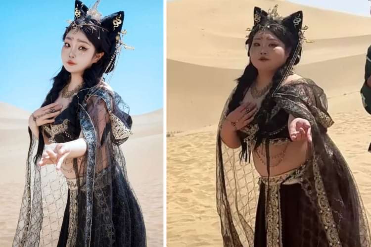 «Большинство её фотографий в соцсетях похожи на ту, что слева», — написал пользователь, опубликовавший это сравнение.