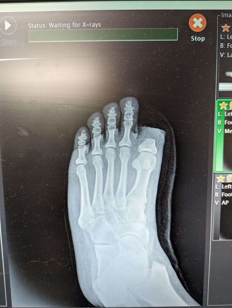 «6-сантиметровый гвоздь в бедренной кости чуть выше колена», — написал автор фото.