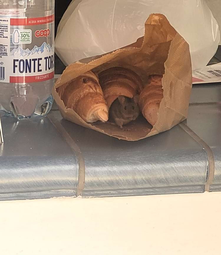 «Я работаю в магазине. И как раз когда я вернулся с завтраком, пришел клиент, поэтому я оставил круассаны снаружи на несколько минут. Оказалось, что несколько минут — это слишком много», — написал автор фото.