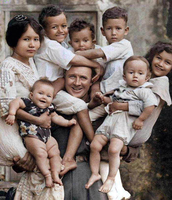 Филиппино-американская семья позирует для семейного портрета. Филиппины, 1912 год
