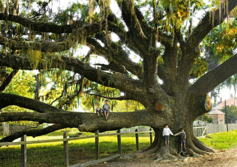 Детвора играет на гигантском дубе, Санкт Францисвилль, штат Луизиана, 1930 год