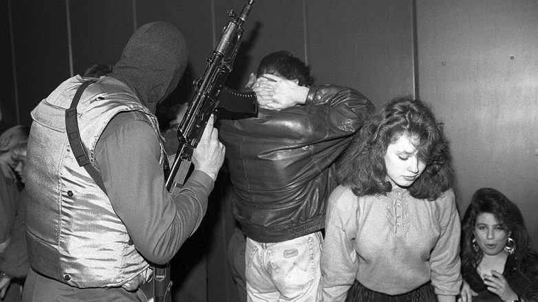 Бойцы московского ОМОНа производят задержание на дискотеке, 1993 год.