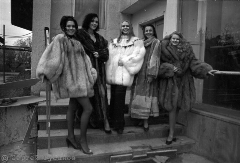 Девушки в шубах от торгового дома «Унивест». Тюмень, 1994 год.
