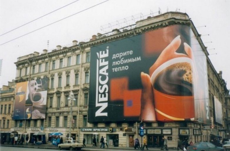 Масштабная реклама кофе «Nescafe». Санкт-Петербург, конец 1990-х.