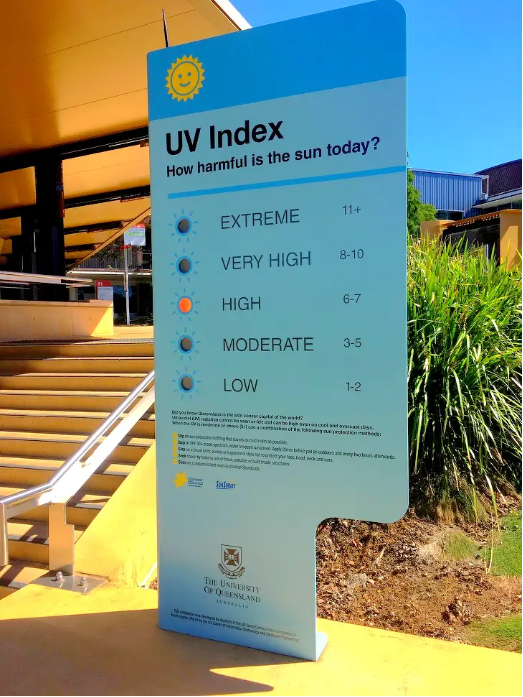 “Экстремальный”, “Очень высокий”, “Высокий”, “Умеренный”, “Низкий”. Каждый австралиец знает, как важно защищать кожу от солнца. Здесь очень легко сгореть, и чтобы этого избежать, есть специальные таблицы, показывающие, насколько агрессивно солнце. Используя доски, вы можете найти самое безопасное время для выхода на улицу и выбрать подходящий солнцезащитный крем.