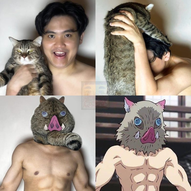 Утверждать, что Ануча использует в своём косплее только подручные материалы — не честно. Стоит отдать должное его верным помощникам — котам. Судя по аккаунтам парня в социальных сетях, у него есть по меньшей мере 3 кота. И отметим, что четвероногие справляются с вверенными им образами не менее талантливо, чем их хозяин.