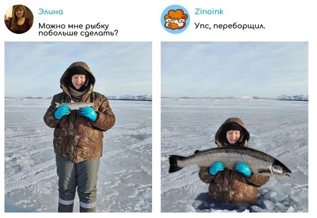 Мастер фотошопа Zinoink снова в деле. Этот парень остроумно и забавно выполняет просьбы своих подписчиков, которым что-то нужно исправить на снимке. Результаты всегда превосходят их ожидания, ибо художнику виднее! Всем веселого просмотра.