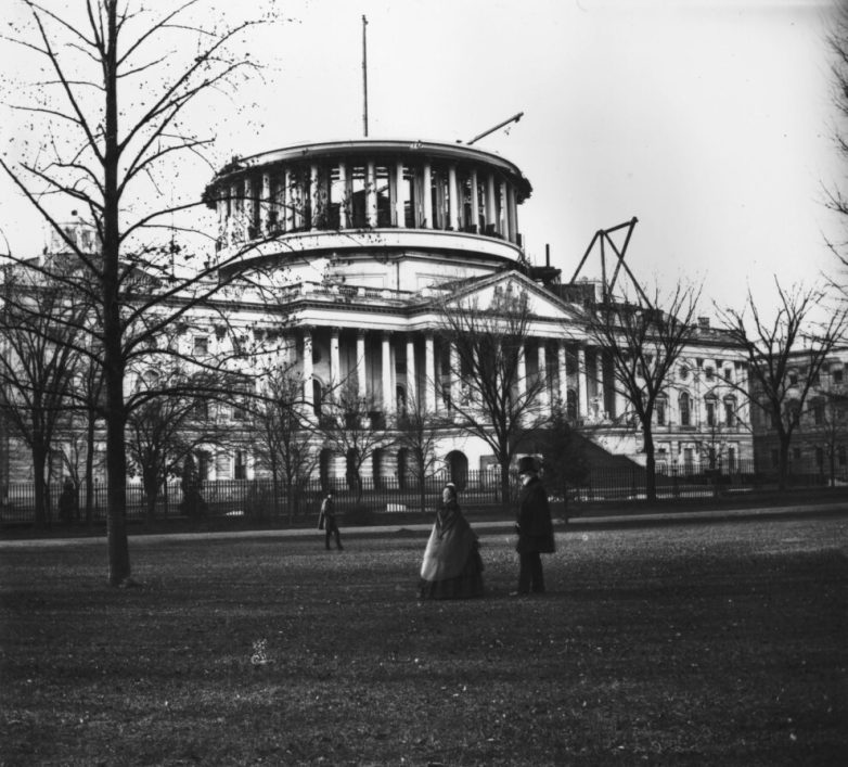 Здание Капитолия в Вашингтоне еще без купола, 1859 год.