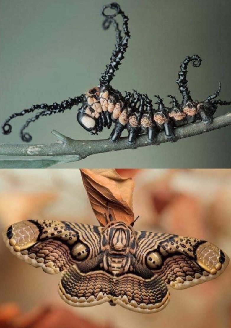 4. Браминская моль (Brahmin moths) — гусеница и бабочка