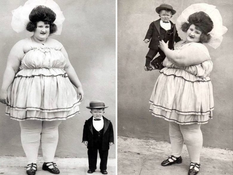 Девушка выступала под псевдонимом «Весёлая Нелли», хвастаясь публике своим весом в 292 килограмма. Артистка любила свою внешность и никогда её не стеснялась. Кларенс считался самым маленьким мужчиной в мире. Известно, что в 18 лет он весил всего 5,9 килограммов при росте в 71 сантиметр.