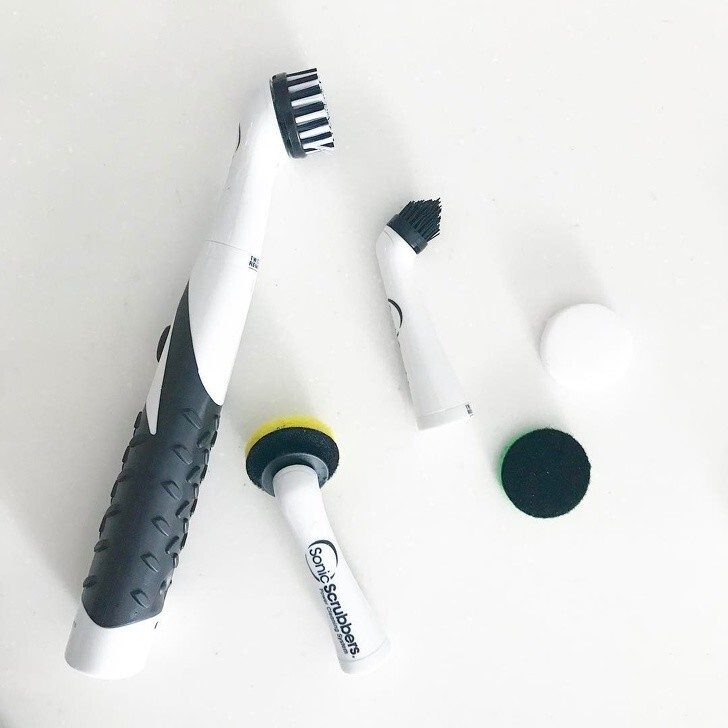 Устройство работает как электрическая зубная щетка и вращается с большой скоростью. Поэтому для уборки не нужны большие усилия. Одна из насадок меламиновая губка.