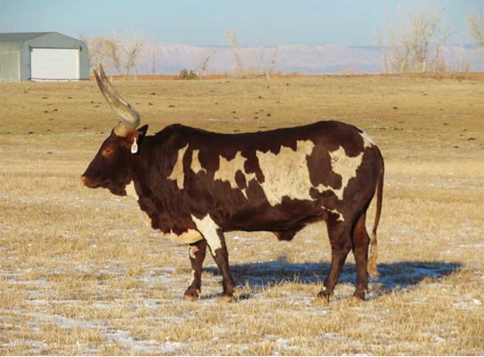 Представитель ватусси — породы крупного рогатого скота выглядит прозрачным на фоне поля из-за своего окраса.