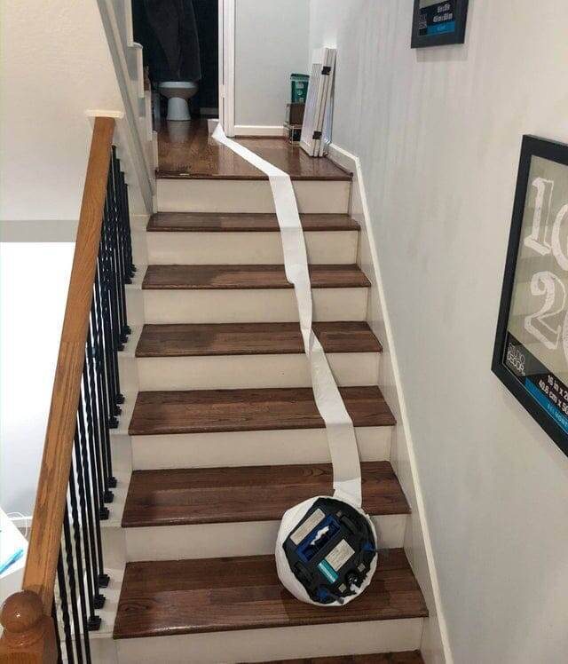 2. «Робот-пылесос как-то обмотал туалетную бумагу вокруг сенсоров и упал с лестницы»