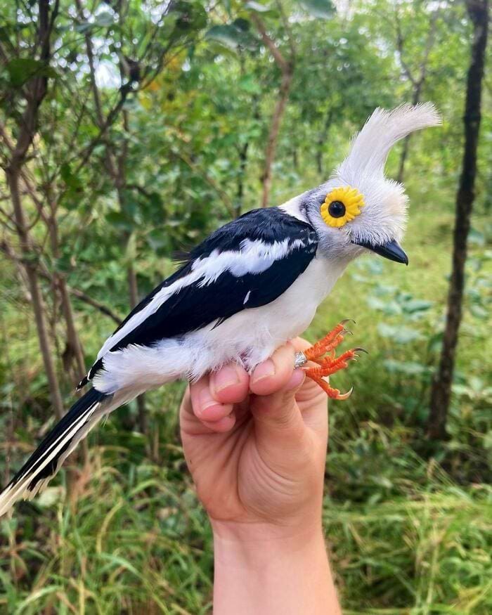 Кому-то глаза этой птички могут больше напоминать цветок рудбекии. На самом деле выглядит как поделка, сделанная руками какого-нибудь искусного мастера