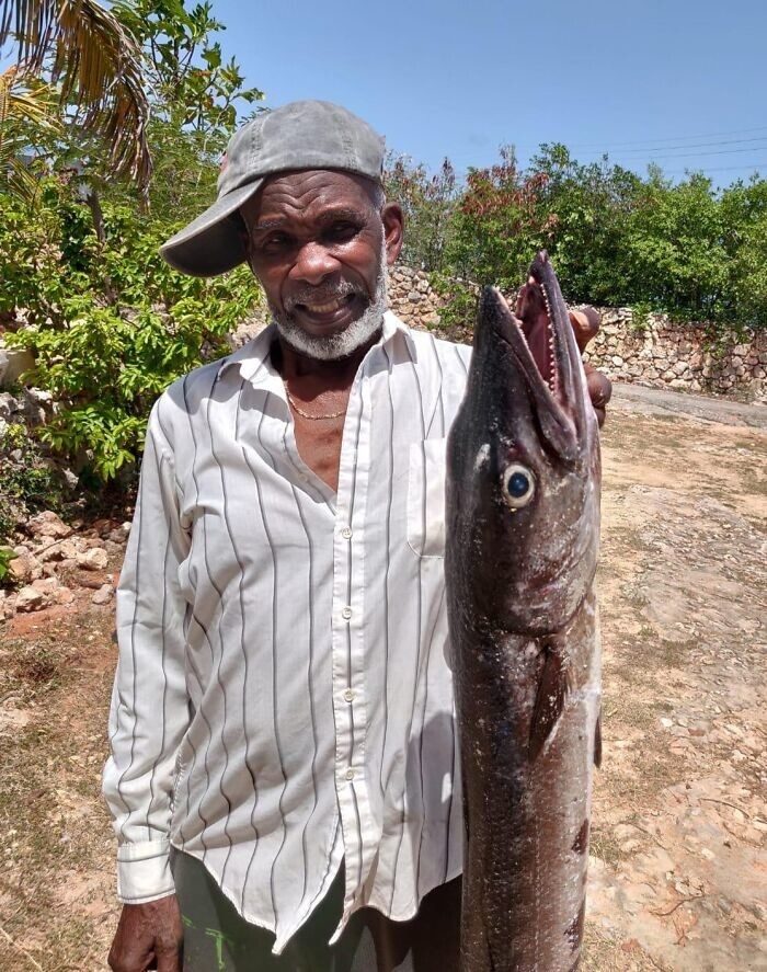 16. «Мой дедушка поймал барракуду и очень этим гордится»