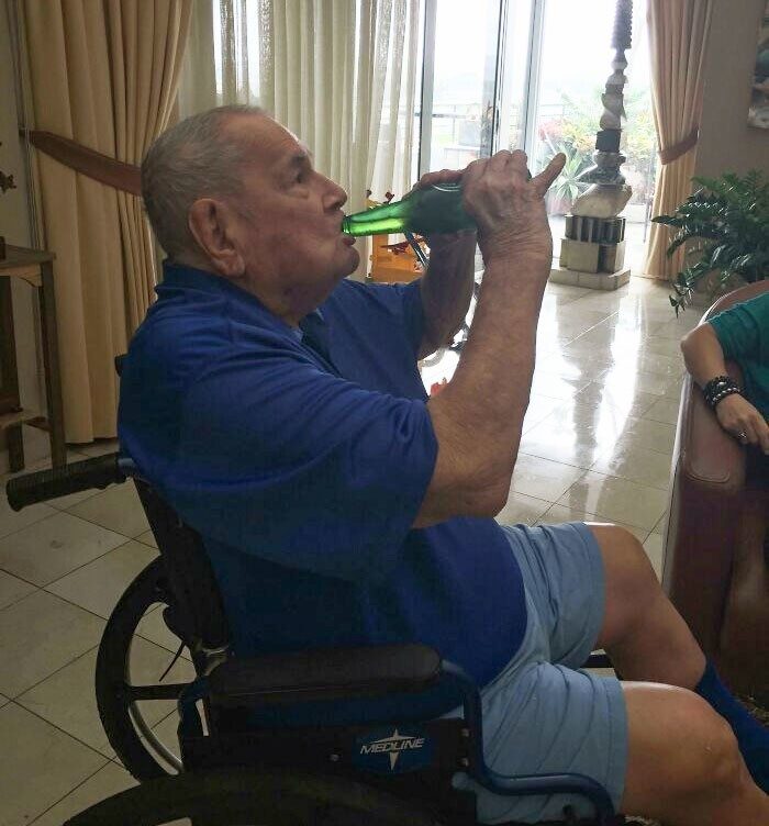 30. «Мой дедушка празднует свой 95-й день рождения, попивая холодное пиво прямо из бутылки. Обычно он пьет жидкости через соломинку»