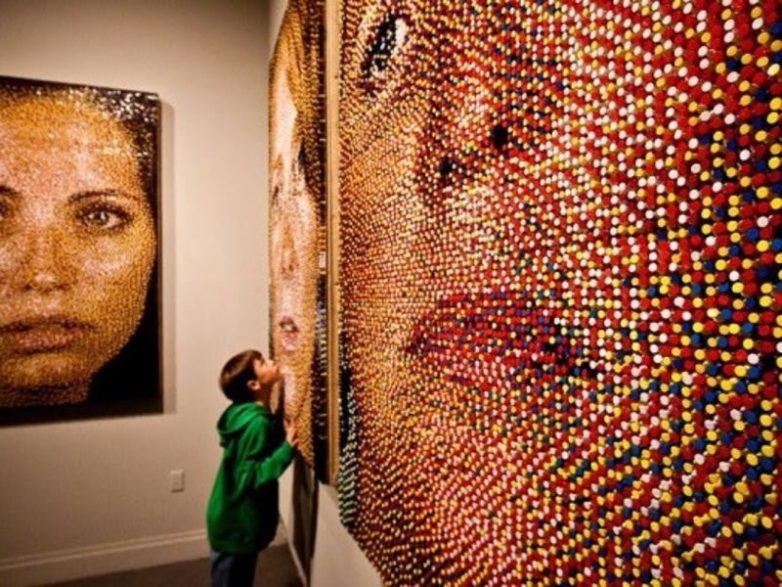 Художник-мозаичист Джейсон Мечиер подсластил искусство, создав портрет актрисы и телеведущей Рози О'Доннел из чипсов, кренделей, печенья и многих других вкусняшек. Этот художник известен тем, что создаёт портреты богатых и знаменитых из конфет, еды, бобов, пряжи, таблеток, а также многих других бытовых предметов и мелочей.