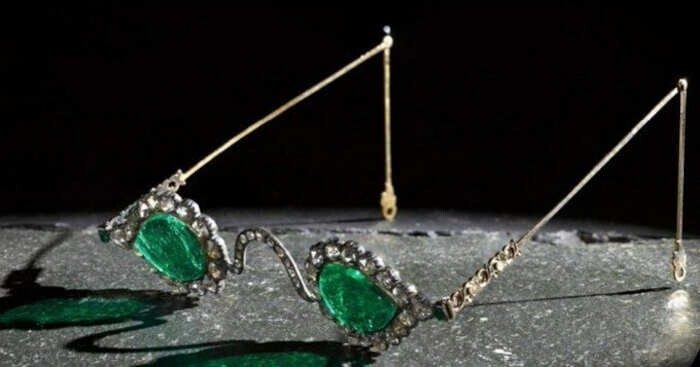 6. Изумрудные очки изготовлены в эпоху Великих Моголов: династии, правившей в XVI–XVII веках. Они были сделаны из цельного изумруда, весом 300 карат и, как считалось, обладали мистическими свойствами
