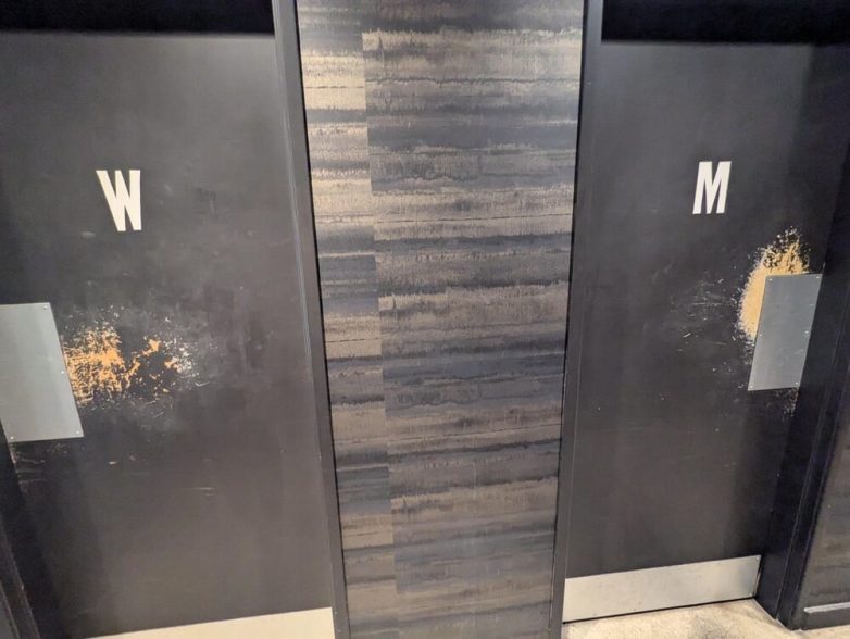 16. На фото заметно, как годами мужчины и женщины открывали дверь в уборные