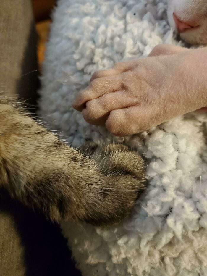 Лапка сфинкса против лапки обычной кошки