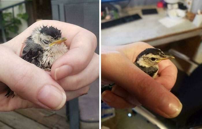 «Разница во внешнем виде этого поползня после того, как я его нашел, и после двухчасового сна в коробке из-под обуви»