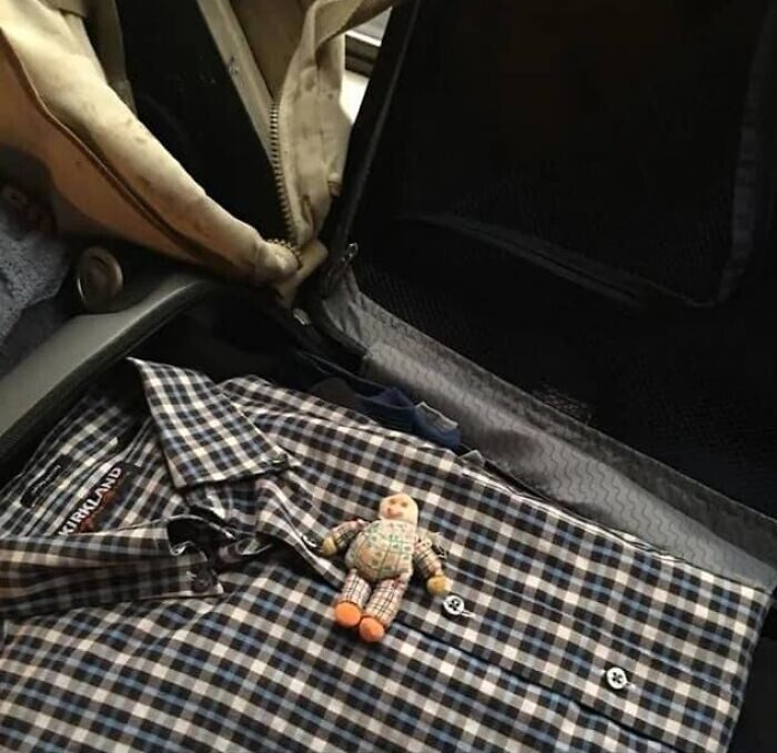 «Мой папа боится летать, поэтому, когда мне было 5 лет, я сделала для него куклу-талисман, которую он мог держать в самолете. Мама только что прислала мне эту фотографию. Он собирается приехать ко мне в гости. Кукле 43 года!»