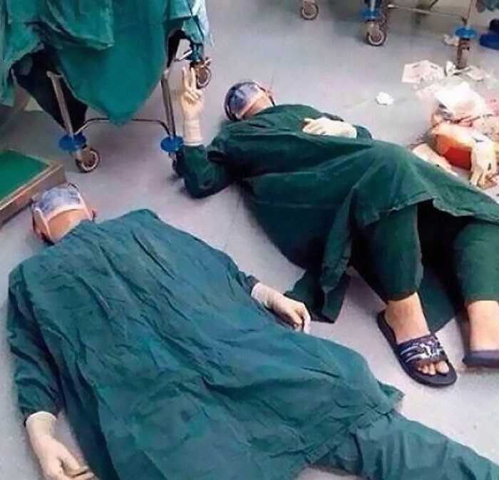 «Два хирурга после успешного удаления опухоли мозга в ходе 32-часовой операции».