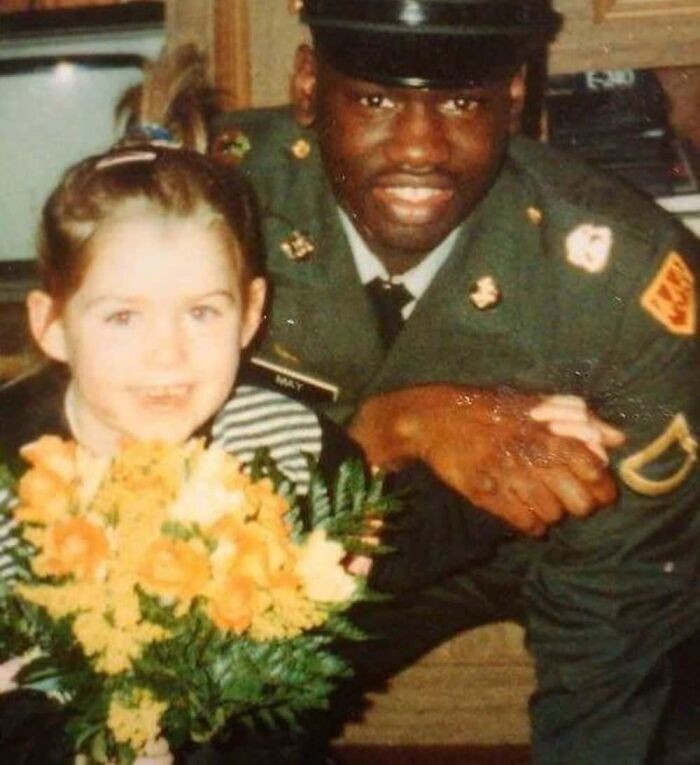 «Это мой отчим и я. Я немка, и моя мама вышла за него замуж, когда мне было 4 года. Ему было всего 18. Он воспитал меня лучше, чем моя собственная мать или отец, даже после неприятного развода (мать ему изменила). Отчим не обращал внимания на расизм и стереотипы, на негатив от окружающих, когда мы гуляли вместе, и с гордостью называл меня своей дочерью. К счастью, он все еще рядом со мной, когда я в нем нуждаюсь».