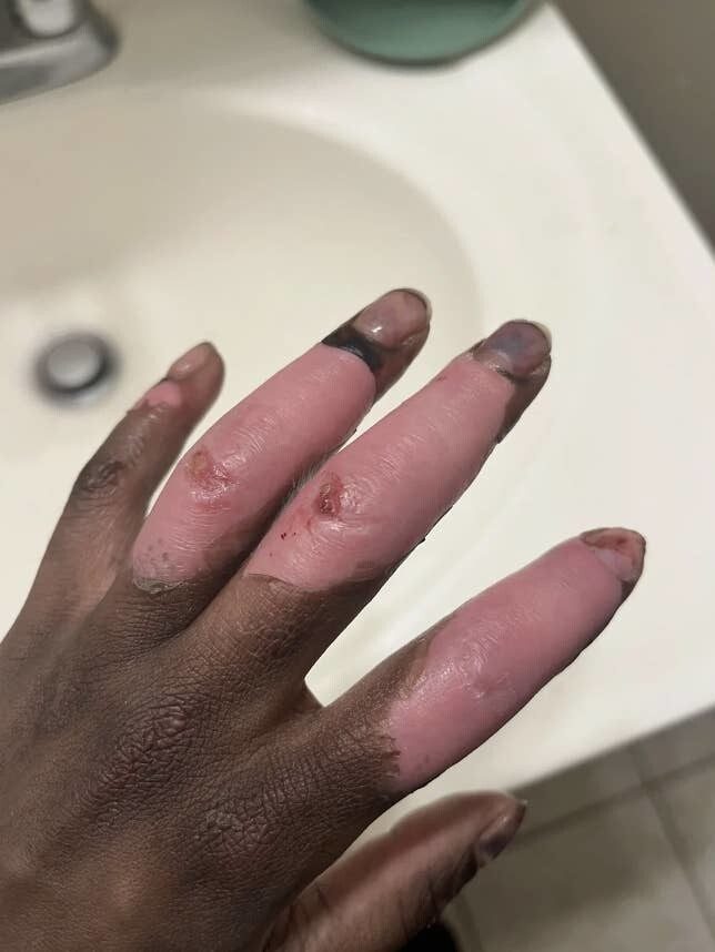 1. Так выглядит обморожение пальцев у темнокожего человека
