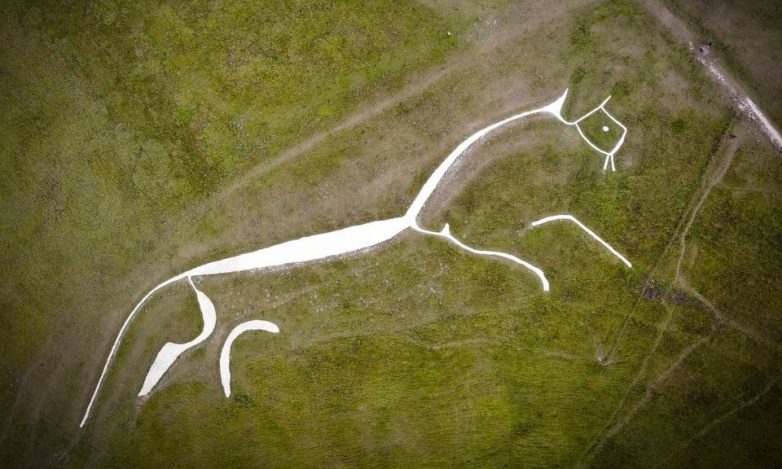 Уффингтонская белая лошадь в Англии — это доисторическая фигура из мела на холме, датируемая 1000 годом до нашей эры