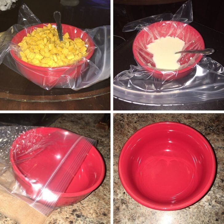 9. Вот как мой муж хранит остатки еды в холодильнике