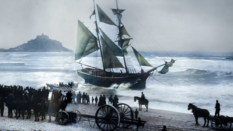 «Молодая Гортензия», выброшенная на мель у горы Святого Михаила. 17 мая 1888 года, Марацион, Корнуолл, Англия.