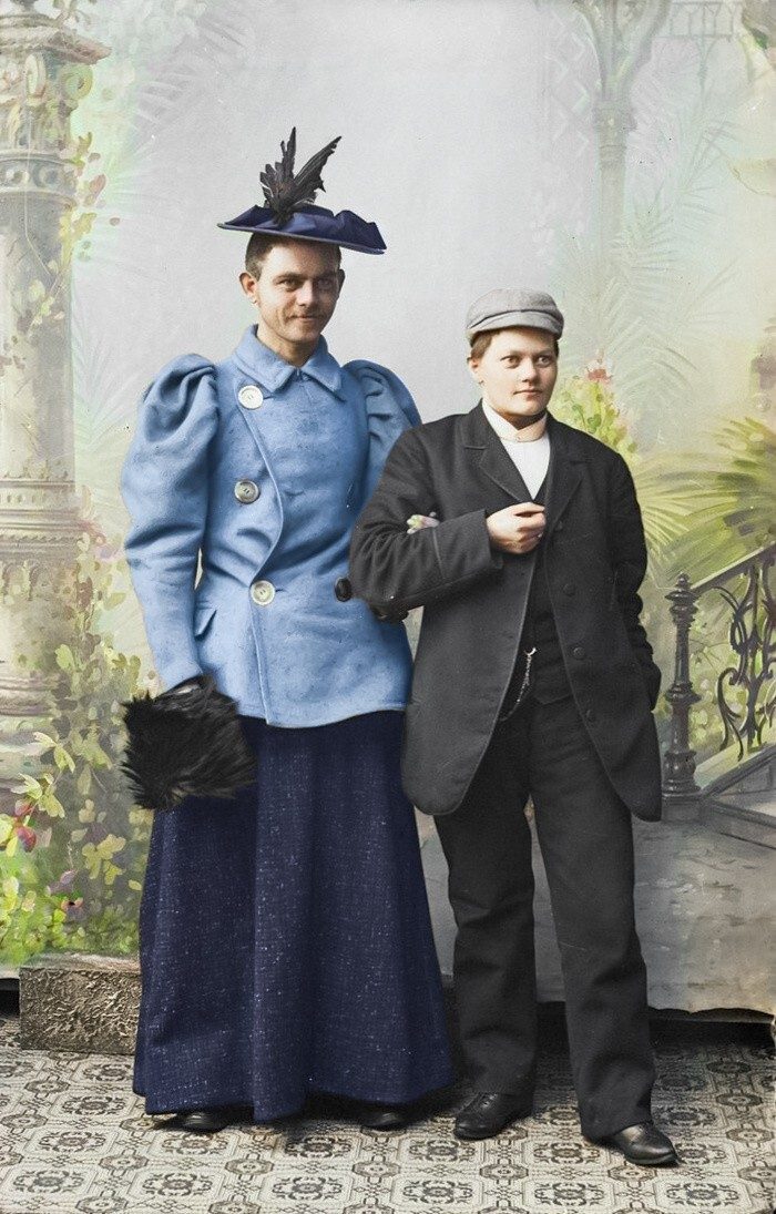 Суфражистка Мари Хёг и мужчина поменялись одеждой. Норвегия, 1895 год.