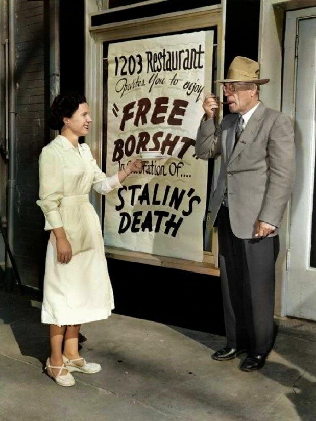 Ресторан «1203» приглашает на бесплатный борщ в честь празднования смерти Сталина. Вашингтон, 1953 год.
