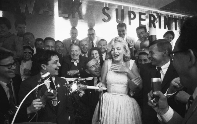 Мэрилин Монро с петардой в руках открывает здание Time-Life в Нью-Йорке, 1957 год