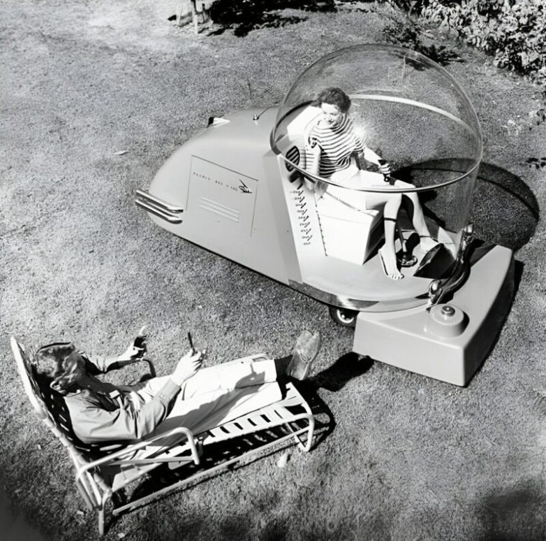 Чтобы в жаркую погоду было комфортно косить траву, футуристичную газонокосилку оборудовали кондиционером, 1957 год