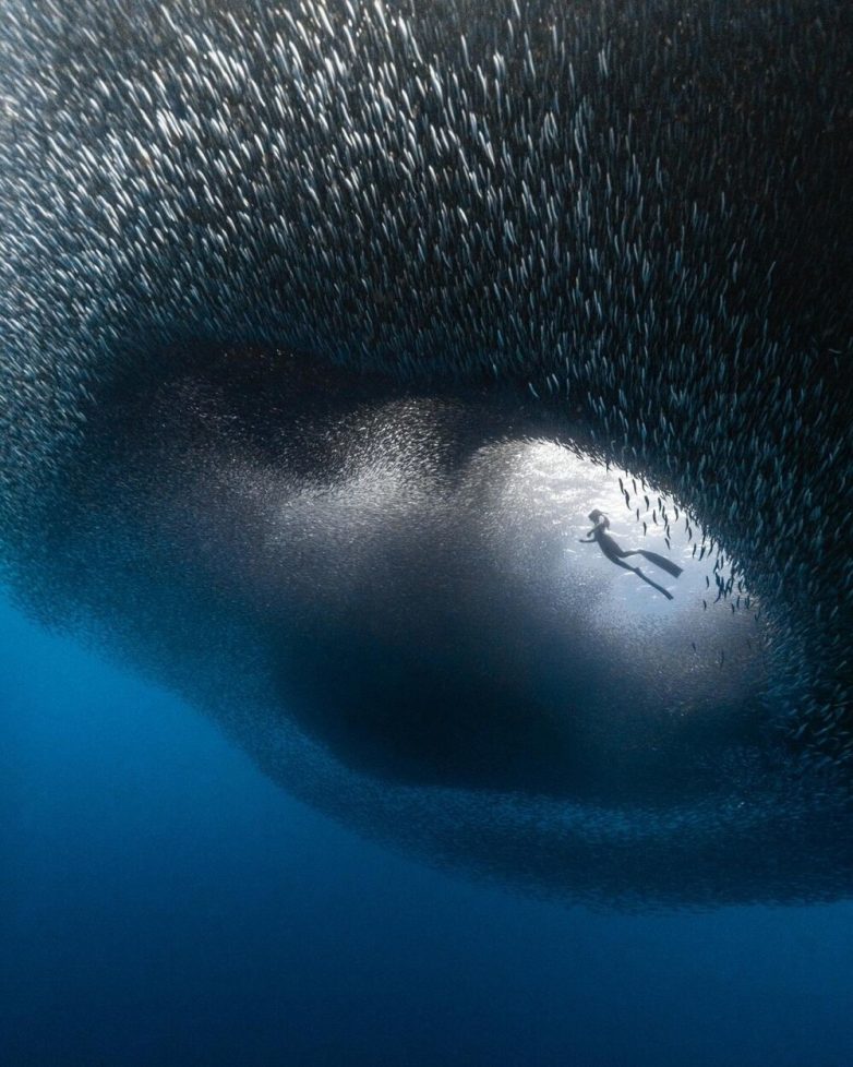 Фотограф и инструктор по фридайвингу Бен Явар работал на этих соревнованиях. Дайверы погружались на глубину 100 метров на одном вдохе.