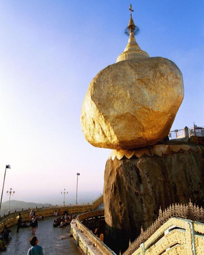 8. Золотой камень в Мьянме находится на возвышении 1100 метров над уровнем моря, на вершине холма Келаса