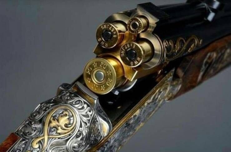 10. Четырехстволка: один ствол для патронов .22 Хорнет, два 8x57 и последний 20 калибра