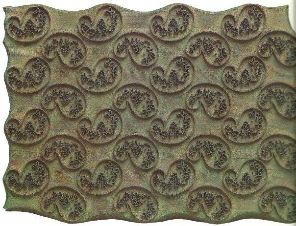 9. Прямоугольная доска с узором, из медных пластинок, шпилек и деревянных колышков