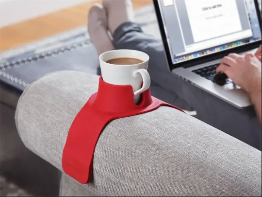 Этот дизайн очень удобно помещается на подлокотнике дивана, так что вы всегда можете держать под рукой свои любимые напитки, не боясь случайно их опрокинуть.