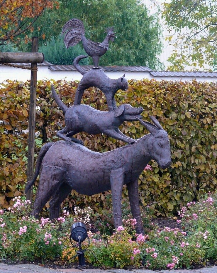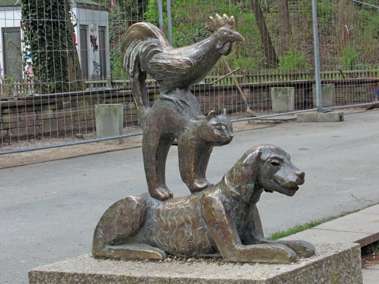Конечно, главным по праву считается памятник в Бремене, установленный в 1951 году в центральной части города. Автором стал скульптор Герхард Маркс. Друзья расположились в форме пирамиды. Композиция служит отправной точкой туристического маршрута «Немецкая дорога сказок» и считается символом города.