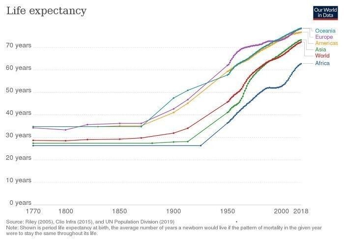 Сегодня я узнал, что известные нам данные о продолжительности жизни в средние века включают младенческую смертность. Таким образом в момент рождения ожидаемая продолжительность жизни английских вельмож 13-го века составляла 30 лет, но, когда им исполнялось 21, она увеличивалась до 64 лет.