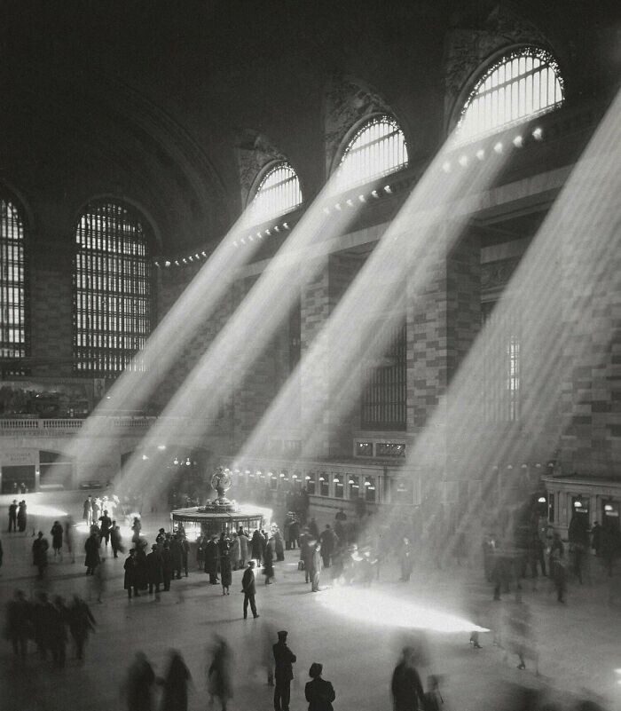 Центральный вокзал Нью-Йорка, 1929 год. Сейчас таких лучей уже не может быть, поскольку вокзал окружают высотные здания