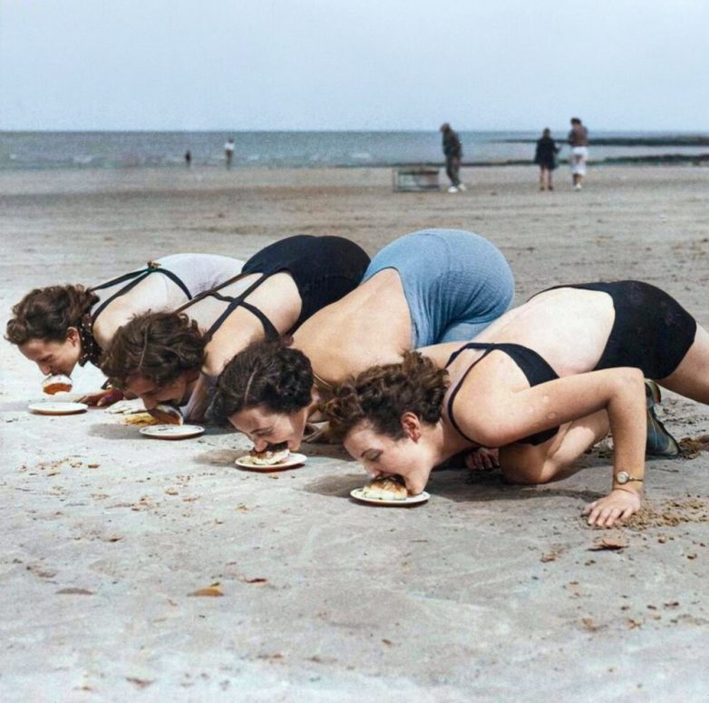 Соревнования по поеданию пирога без помощи рук. США, 1937 год.