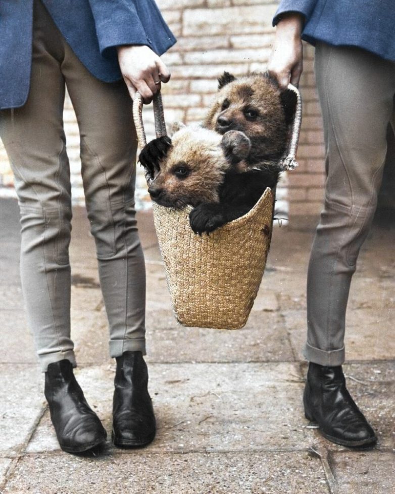 Какие-то люди продают медвежат зоопарку. Лондон, 1962 год.