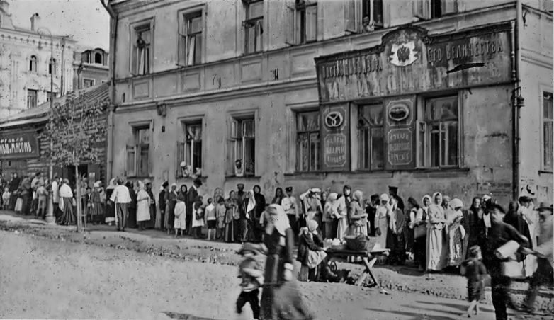 Очередь за хлебом в Москве. Август 1917 года. Российская империя.