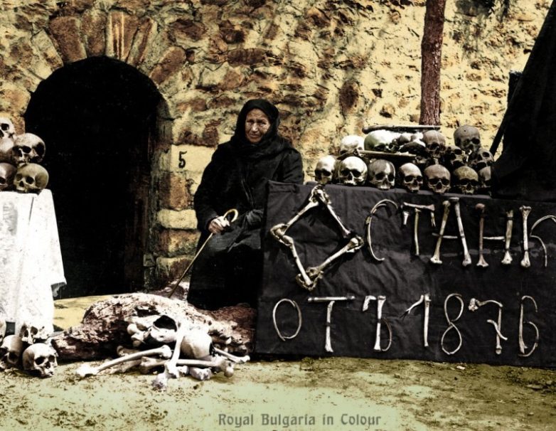 Выжившая после резни в Батаке на руинах деревни, Болгария, 1927 год.
