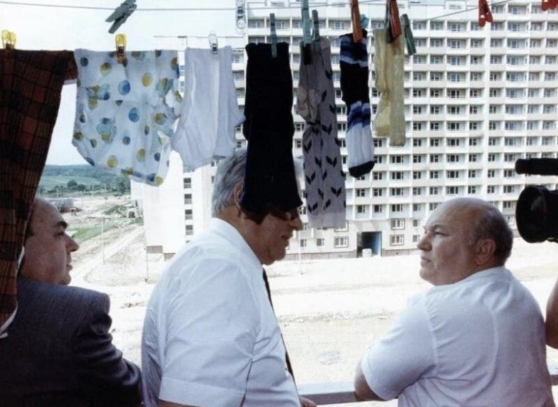 Борис Ельцин и Юрий Лужков в новостройке, 1992 год